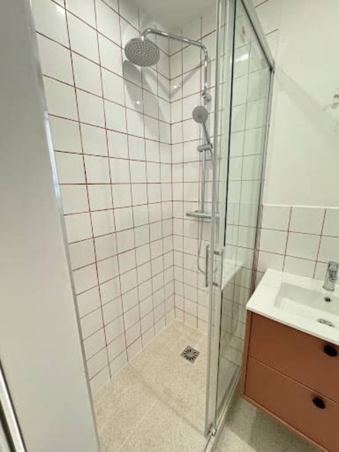 - Installation de douche à l'italienne à Paris 9e : préparation du sol, étanchéité, pose du caniveau et revêtement antidérapant.